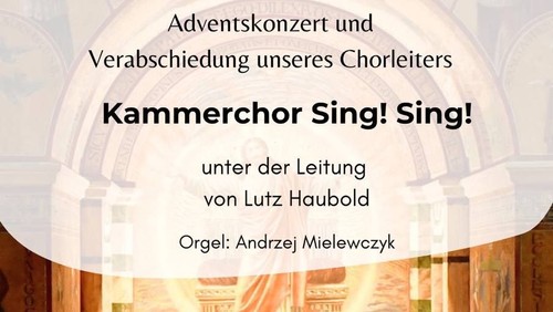 Am 13.12.2025 um 18:00 Uhr dürfen wir den Kammerchor Sing! Sing! in der Kirche Herz Jesu begrüßen. Seien Sie herzlich eingeladen zum Adventskonzert "Canticum Novum" - der Eintritt ist frei, Spenden sind willkommen.