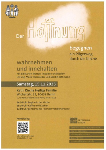 Informationen: www.erzbistumberlin.de/wir-sind/veranstaltungskalender/event/event-title/der-hoffnung-begegnen/