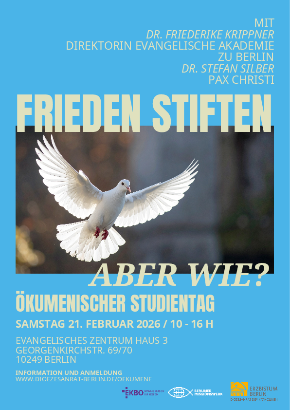 Das Schwerpunktthema „Frieden stiften – aber wie?“ lockte mehr als 70 Interessierte zum diesjährigen Ökumentreffen des Konvents der Ökumenebeauftragten im Sprengel Berlin und des Diözesanrats der Katholiken im Erzbistum Berlin.