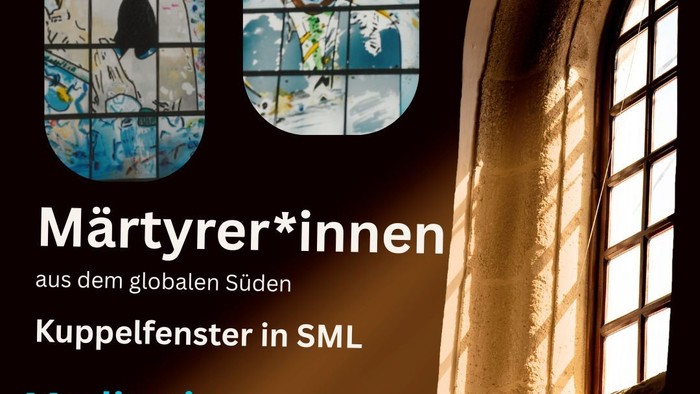 Im Rahmen der Meditativen Gottesdienste wollen wir uns im November mit den Märtyrer*innen aus dem globalen Süden beschäftigen, die in unseren Kuppelfenstern in St. Marien Liebfrauen abgebildet sind. Wer sind diese Menschen gewesen und wer sind sie für uns heute? Zum Gottesdienst gehört ein kleines Ritual, Stille und Musik. Wer möchte, kann sich einen persönlichen Segen zusprechen lassen. Alle sind eingeladen, natürlich auch zum Austausch bei Tee und Brot im Anschluss.
