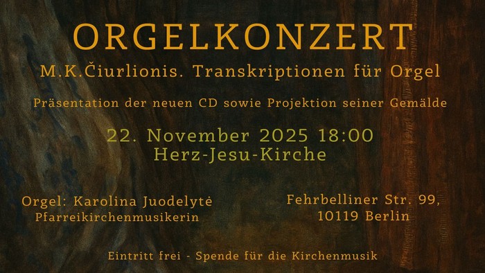Orgelkonzert zum 150-jährigen Geburtstag von Mikalojus Konstantinas Čiurlionis (1875-1911)