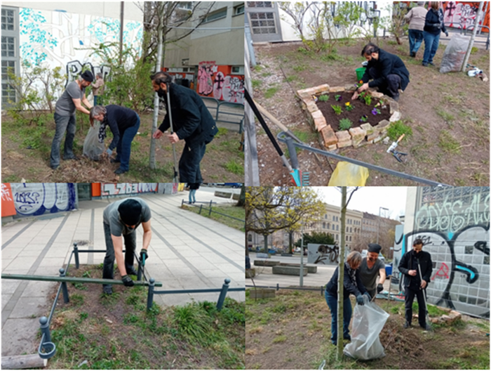 Um die kleine grüne Oase durchgehend zu erhalten, bedarf es nicht nur immer mal wieder solcher Arbeitseinsätze, sondern im Sommer ist auch regelmäßiges Bewässern nötig. Vielleicht finden sich ja ein paar Freiwillige, die in der Nähe wohnen und sich ein wenig um die Gießpflege an den Werktagen kümmern wollen. Meldungen gerne an Bernhard Kreß oder Susanne Deufel-Herbolte.