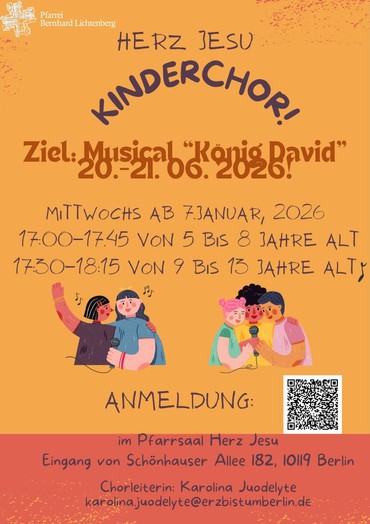 am 20.-21.06.2026 führen wir gemeinsam mit dem Kinderchor der Pfarrei Theresia von Avila das Musical „König David“ auf! ?✨